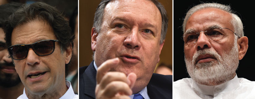 (L-r): Pakistan’s new prime minister Imran Khan. (Aamir Qureshi/AFP/Getty Images); U.S. Secretary of State Mike Pompeo. (Andrew Caballero-Reynolds/AFP/Getty Images); Indian Prime Minister Narendra Modi. (Prakash Singh/AFP/Getty Images)