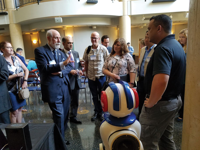 The Sacramento Chapter of the Association for Computing Machinery (ACM) hosted a symposium on August 2, 2018, featuring Dr. Vint Cerf, American Internet pioneer and co-designer of the TCP/IP protocols and one of the creators of the Internet. The Future Worlds Symposium aimed to enhance ability of attendees to raise awareness of important technical, educational, and social issues for anyone who is passionate about how we can apply technologies to shape our future world, in a 5G environment.