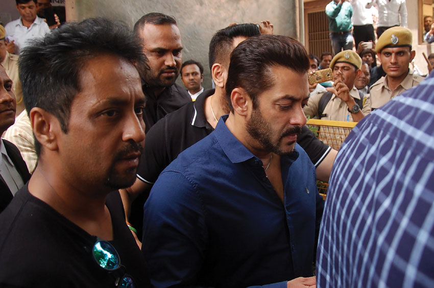 Salman Khan (c) arrives to appear before a court district judge in connection with an Arms Act case in Jodhpur, Aug. 4. (AFP/Getty Images)