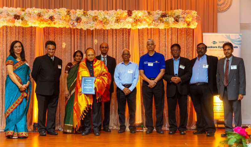 Padma Shri Dr. R.V. Ramani being felicitated at the Sankara Eye Foundation USA annual banquet in Fremont, Calif., Nov. 9. (Siva Dhanasekaran/Silicon Photography)