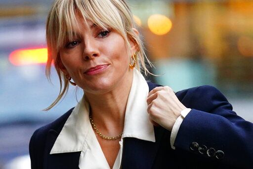 Sienna Miller arrives at the Rolls Building in London, Thursday Dec. 9, 2021. Actor Sienna Miller has accepted “substantial” damages from the publisher of a British tabloid newspaper that she accuses of hacking her phone and leaking news of her pregnancy. (Victoria Jones/PA via AP)