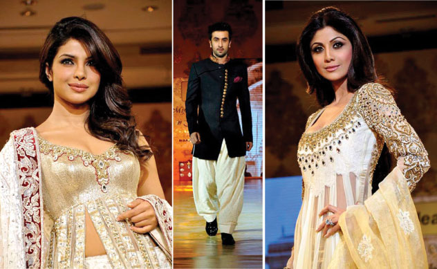 (Above): (From l-r): Bollywood stars Priyanka Chopra, Ranbir Kapoor and Shilpa Shetty at the Mijwan Fashion Show in Mumbai, Jan. 23.