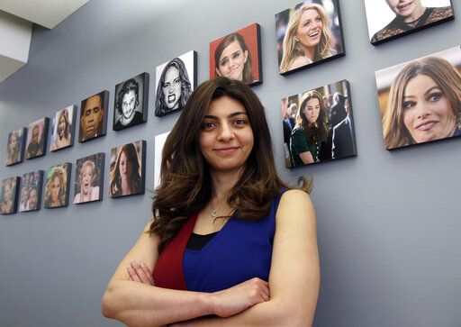 FILE – This April 23, 2018 file photo shows Rana el Kaliouby, CEO of the Boston-based artificial intelligence firm, Affectiva, poses in Boston. El Kaliouby has a new job, deputy CEO of Smart Eye — after the Swedish eye-tracking company bought Affectiva for $73.5 million in June 2021. Carmakers are looking to companies like Smart Eye as they brace for new safety rules and standards around the world that could require dashboard cameras to detect dangerous driver behavior in semi-autonomous vehicles(AP Photo/Elise Amendola, File)