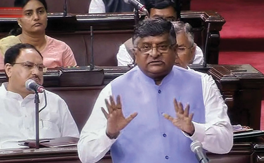 India’s Law Minister Ravi Shankar Prasad speaks in the Rajya Sabha during the Monsoon session of Parliament, in New Delhi, July 23. (PTI/TV GRAB)