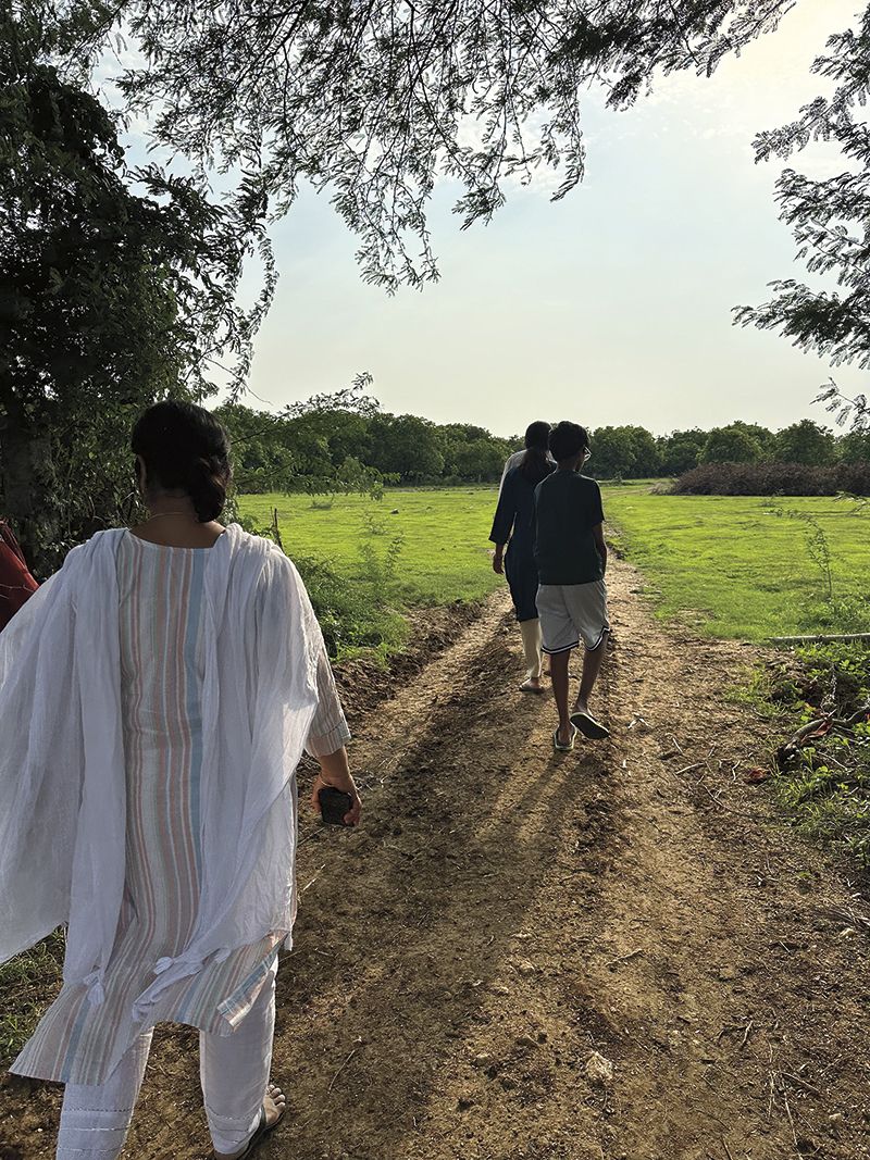 My family walking towards our orchard on a dirt path in Anjanapuram, Telangana (All Photos: Sahana Nagadala)