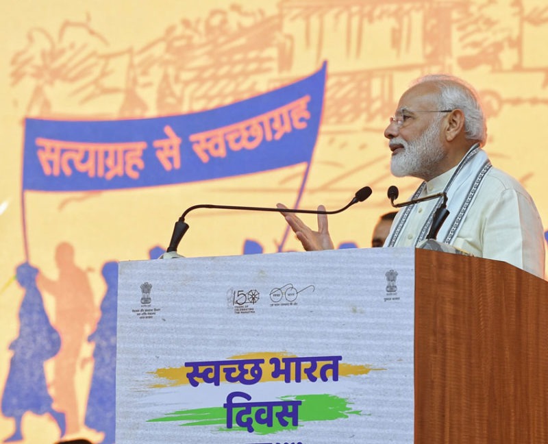 Indian Prime Minister Narendra Modi at the inauguration of the “Swachh Bharat Diwas 2019,” in Ahmedabad, Gujarat, Oct. 02. (PIB)