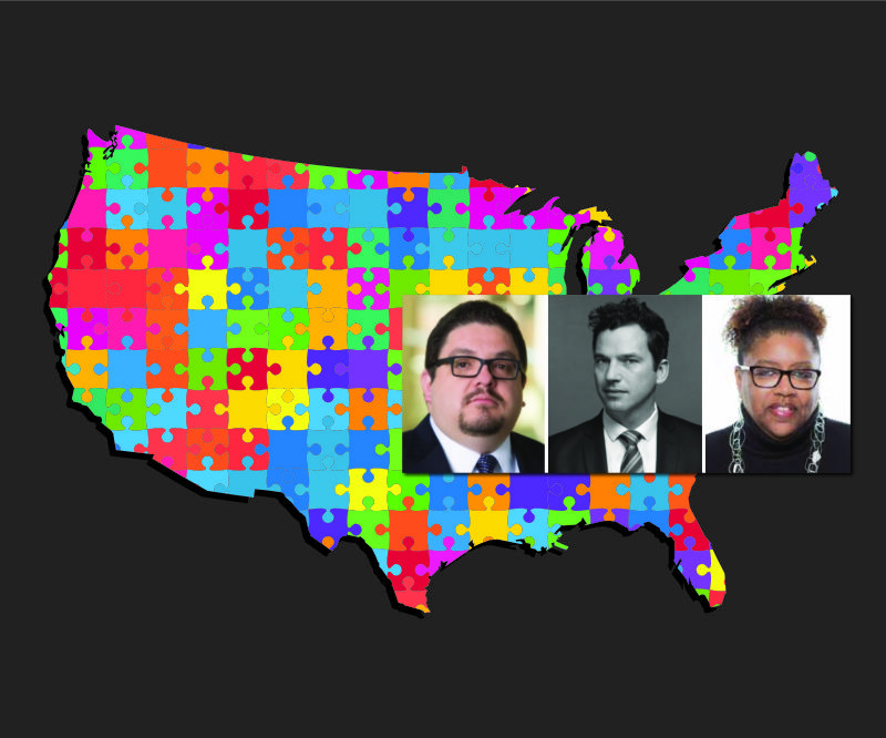 (Above, Inset: l-r): Mark Hugo Lopez, Director of Hispanic Research, Pew Research Center; Yurij Rudensky, Redistricting Counsel, Brennan Center for Justice. NYU Law School; Jesselyn McCurdy, Interim Executive Vice President for Government Affairs, The Leadership Conference Education Fund.