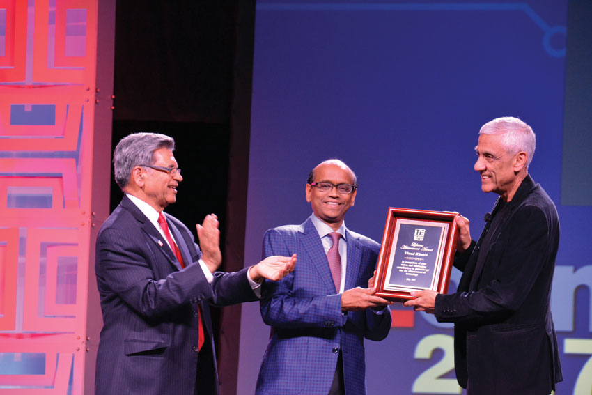 The Grand Keynote also featured some lifetime achievement awards by TiE in which Vinod Khosla was a recipient of one. The awards were presented by former TiE President, Vish Mishra, and current TiE President, Ram Reddy. There was a brief message from Marketing Chair, Anand Akela, as well in the beginning. There was also a brief mention of TiE50 with the awards given later in TiEcon.