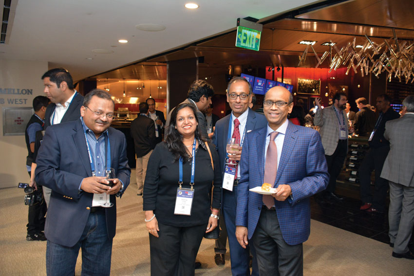 The special reception was an exclusive event in the field-level BNY Mellon Lounge at the Levis Stadium. The evening cocktail reception was brimming with elites of TiE and community influencers from Silicon Valley. Special Guests Jayadeep Krishnan and Srinivas Kollipara, CEOs of T-Hub, and TiE President Ram Reddy spoke at the event.