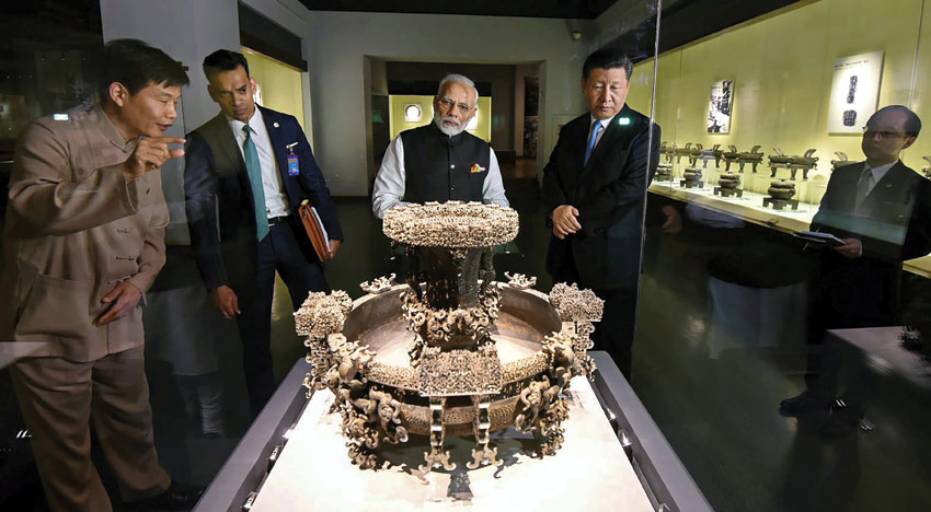 Prime Minister Narendra Modi with Chinese President Xi Jinping visit an exhibition at Hubei Provincial Museum, in Wuhan, China, April 27. (PTI/PIB)
