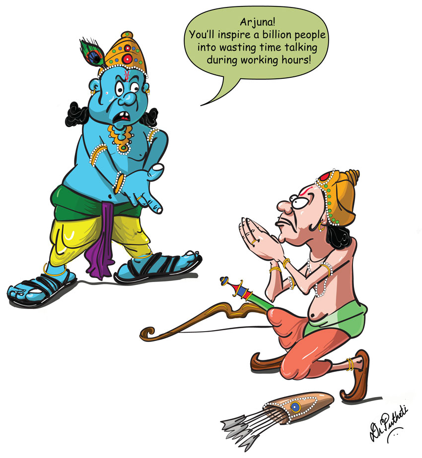 Having done Doctorate in Philosophy, I have a special interest in philosophy. I always wondered how can a conversation between two individuals result into 700 page scripture — Bhagawad Gita. I believe Lord Krishna had to display his Vishwaroop not to convince Arjuna, but to intimidate him to stop talking and get back to work.