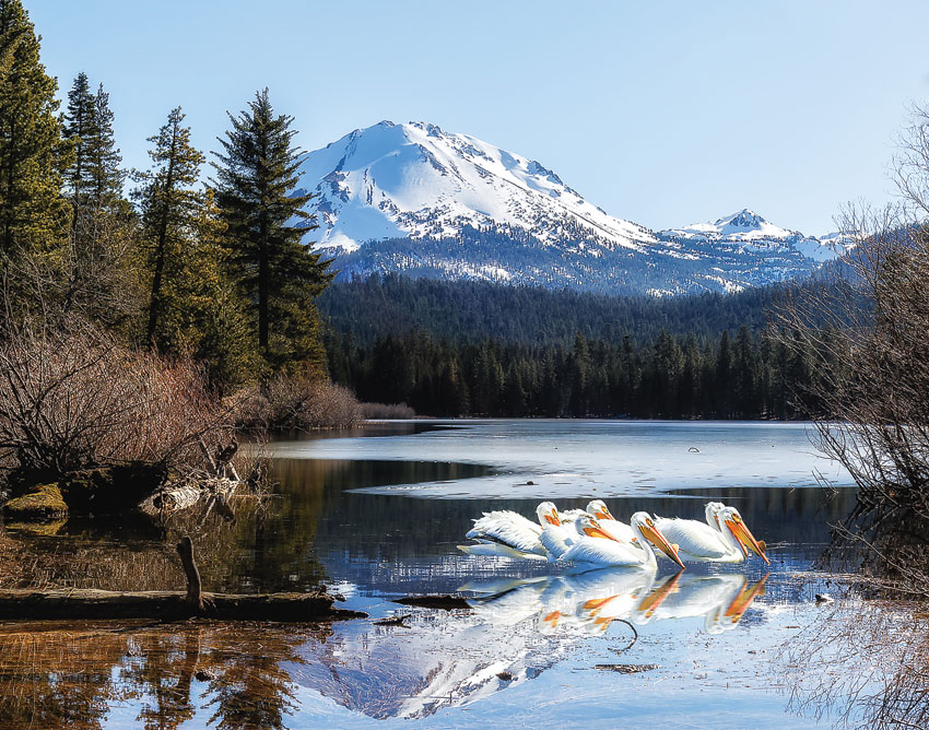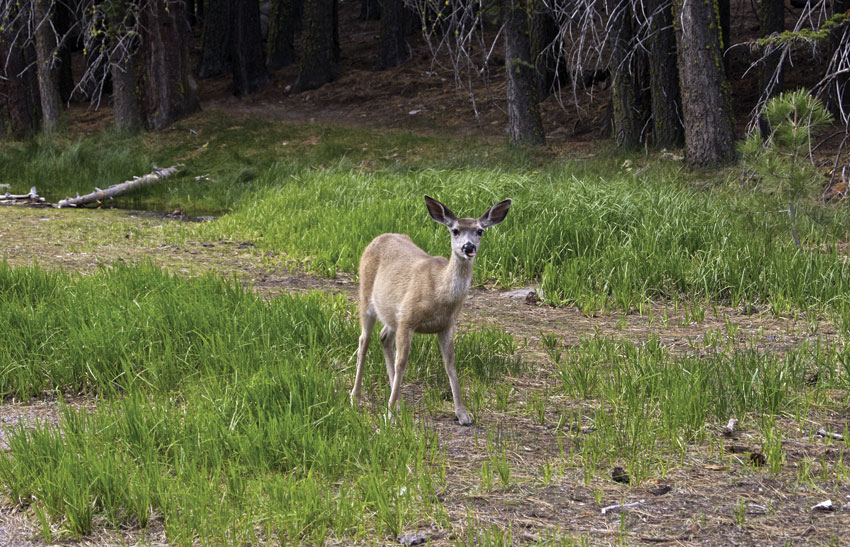 We hardly spoke as we enjoyed our copious feast. Now and then the quiet would be broken by an exclamation of “Look, a woodpecker!,” or a visit from a friendly deer. The day was theatre of such sightings along around Manzanita Lake where your neighbors can range from brightly plumed songbirds, fat squirrels, occasionally a shy muskrat or beaver. Here and in the surrounding forest is a birdwatcher’s paradise.