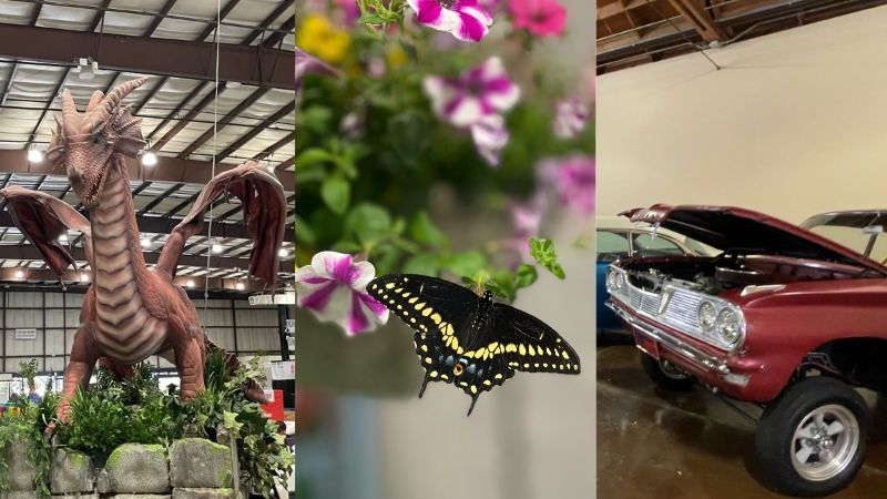 (L-r) An interactive exhibit on the world of dragons, butterflies, and classic hot rods at the San Mateo County Fair 2023 (Photos: Vansh A. Gupta/Siliconeer)