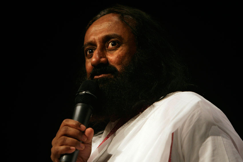 Indian spiritual leader, humanitarian, and teacher, Sri Sri Ravi Shankar speaks to a South African audience gathered in Milnerton, Cape Town, on August 28, 2012. Sri Sri Ravi Shankar is the founder the Art of Living Foundation (Mark Wessels/AFP/Getty Images)