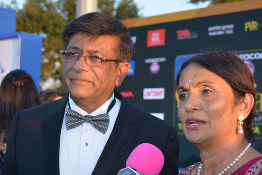 File photo of Dr. Kiran Patel with wife, Pallavi, at 2014 IIFA Awards, in Tampa, Fla. (Amar D. Gupta/Siliconeer)