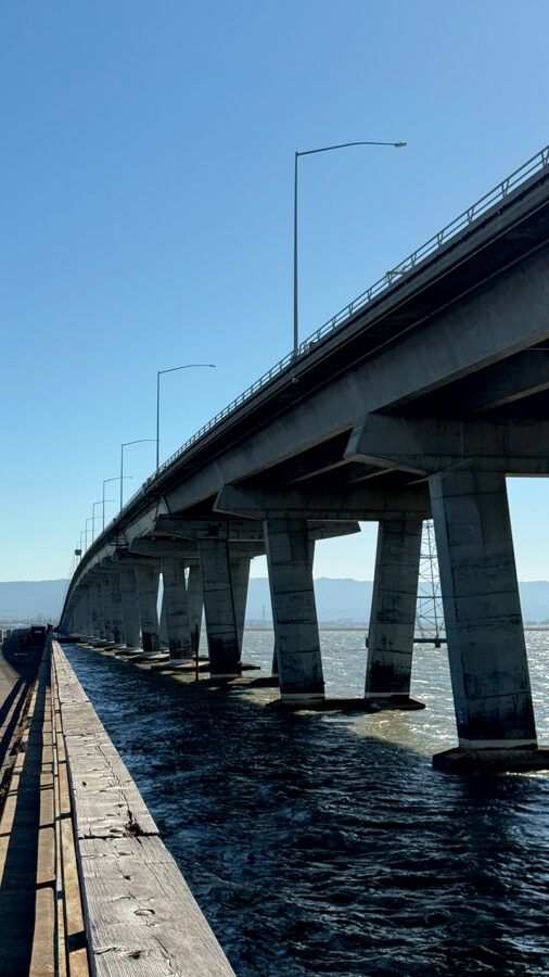 The old Dumbarton Bridge pier, built in 1927, remains partially intact in the bay after the current bridge’s construction. These concrete pillars now serve as roosting spots for birds and provide fishing access, while offering views of Dumbarton Bridge, the bay, and surrounding wetlands.