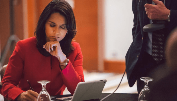 Call moderator Jaya Padmanabhan of India Currents asked how she planned “to rise above” such divisiveness and Gabbard responded that the challenge is “staying focused on why we are here” and “understanding what unites us as we continue to fight the good fight.”