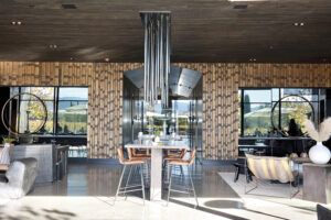 A stone-walled house covered with a bush gave a very medieval French vibe when entering the Hirondelle House. As traditional as the exterior looks, the interior was very chic and modern. Fancy barstools, lounge chairs, textured walls, and modern lighting gave the Hirondelle House a very upscale and airy feeling. Walk outside towards the patio is a contemporary outdoor wine-tasting table overlooking a picturesque scenery of vineyards in front of luscious green hills. Currently, all tasting is by appointment only.
