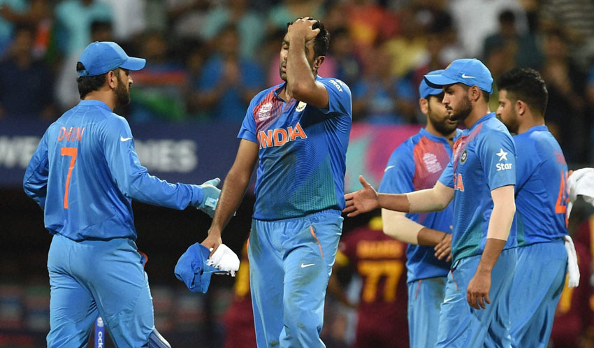 Title aspirants India were knocked out of the ICC World Twenty20, Mar. 31, with a heartbreaking seven-wicket defeat at the hands of West Indies, who capitalized on the home team’s sloppy bowling display in a high-scoring semifinal showdown at the Wankhede Stadium in Mumbai, writes S.S. Ramaswamy. (#Cricket, #2016WorldCupT20, #WT20, #WorldT20, #ICCWorldT20, #MeninBlue, #India, #Windies, #WestIndies, #Dhoni, #Simmons, #Kohli, #imvkohli, #Siliconeer, @Siliconeer)