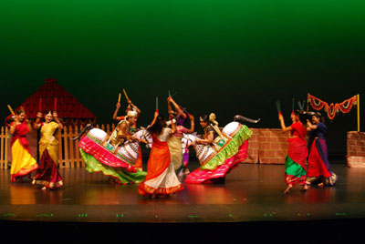 The evening ended with “The Village Carnival” which showcased five folk dances from South India. These included Karagam-style dancing while balancing a decorated pot on one’s head; a Kaavadi-style dance with fast-beat dancing while carrying a yoke on one’s shoulder; Kolattam, a dandia-style dance with a pair of sticks; Poikal Kudurai, where dancers were on stilettos inside huge dummy horses and danced gracefully; and Silambaatam, a martial art form using a five-feet-long stick as part of the dance movement.