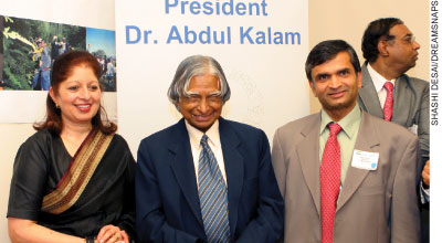 (Right): Former Indian President A.P.J. Abdul Kalam flanked by ICC chair Talat Hasan (l) and ICC supporter Raj Jaswa.