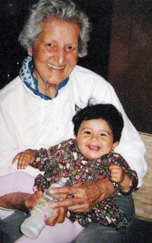 (Right): Kartar Dhillon with great-granddaughter Alessandra Mandelke, 2005.