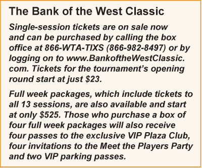 The Bank of the West Classic (www.BankOfTheWestClassic.com) is entering its 38th year and is a Sony Ericsson WTA Tour Tier II event. The tournament features a 28-player singles draw as well as a 16-team doubles draw with total prize money of $600,000. The event is owned and operated by IMG and serves as the opening women’s event of the Olympus US Open Series.