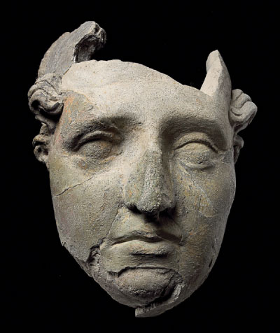 (Right): COVER PHOTO: Male or female head made of unfired clay, dating from the second century B.C., from the site of the former Greek city Aï Khanum in a region of Afghanistan that was conquered by Alexander the Great. National Museum of Afghanistan. (THIERRY OLLIVIER / MUSÉE GUIMET)
