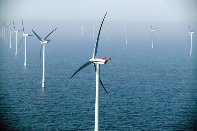 (Above): Wind turbines installed in sea to harness wind energy. If we focus on wind and solar energy, we will surely be able to turn the tables upside down in a few decades when we will be producing 80 percent clean energy from wind and solar together sources with hydropower, nuclear power and in the form of biofuels and other clean energy.