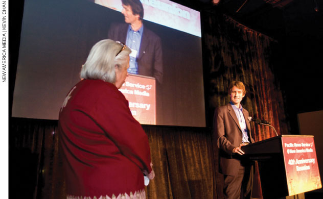 The evening was emcee’d by feisty journalist, author and former-NAM TV show host Emil Guillermo. State Senator Mark Leno presented a proclamation of appreciation from the State of California, noting, to the delight of the audience, that although the Golden State was running of out of funds, they “would always have money to provide for the frames that encase (their) proclamations.” San Francisco Mayor Gavin Newsom sent over a declaration of his own, proclaiming November 12 as New America Media day.