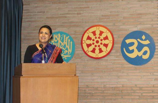 (Above): Indian Ambassador Meera Shankar speaking at the Gandhi Jayanti celebrations at the Gandhi Memorial Center, , Bethesda, Md, Oct. 2.