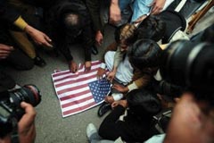 Activists set fire to a U.S. flag during a protest in Islamabad. Pakistan rebuffed a call from the United States for the immediate release of an American man who shot dead two men in a Lahore street.