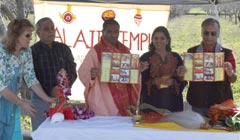 Seen at the seventh anniversary celebrations of the Balaji Temple (r-l): Prabhu and Poonam Goel, Swamiji Narayananda, Mahesh Nihalani and Laskhmi V. Dasi releasing new temple brochure.