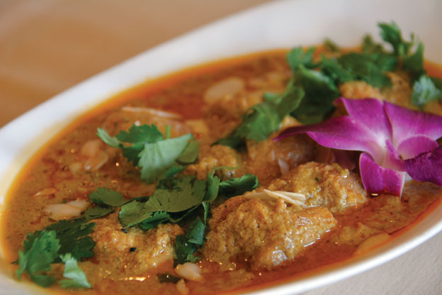 Take out into a serving dish and garnish with cilantro and almond flakes.