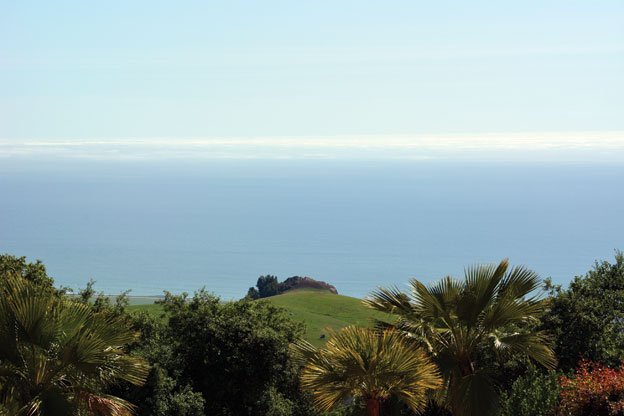 (Above): From the Hearst Castle, a view of the garden, and horizon above the Pacific . [Photo: Siliconeer]