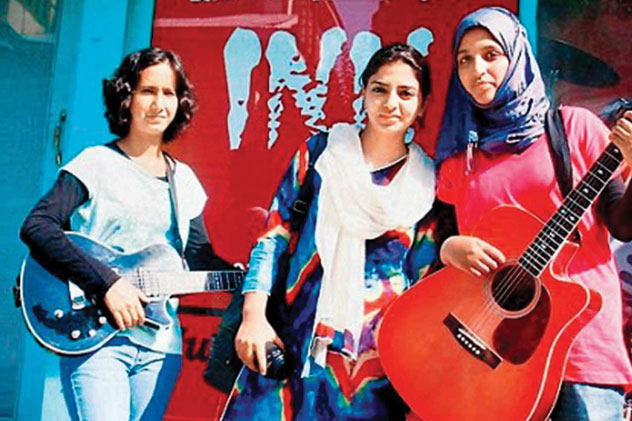 (Above): ‘Pragaash’ or “first light” in Kashmiri, was an all girl rock band that was forced to disband after their only concert because of threats received on social media and a ‘fatwa’ issued against them by a top Muslim cleric. [Photo: Indexoncensorship.org]
