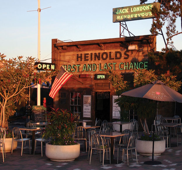 Two indelible venues in Northern California have cemented the myth and story of Jack London. The most dramatic is, of course, Heinold’s First and Last Chance Saloon at Jack London Square in Oakland, California. Little has changed since it was first built in 1883 by Johnny Heinold. Even the name First and Last Chance has a distinct provenance. The island of Alameda, across the Estuary, was a “dry” city and commuters on the Alameda to Oakland ferry dubbed it their first and last chance for refreshments.
