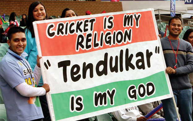 (Above): Sachin fans proudly hold a sign honoring the little master Sachin Tendulkar.