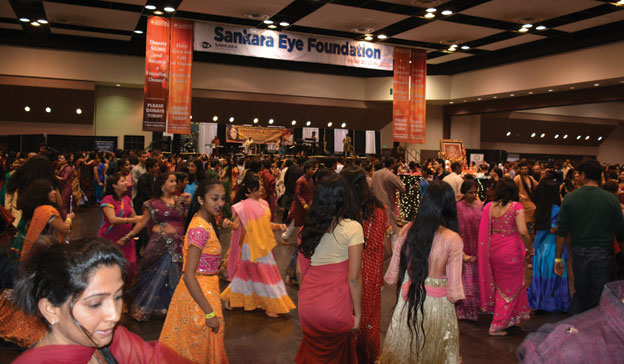 (Above): Thousands join in the Garba round at Sankara Eye Foundation Dandia and Raas Garba event, Oct. 11, at the Santa Clara Convention Center. [Photo: Amar D. Gupta | Siliconeer]