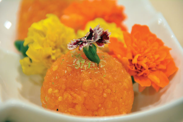 Heat sugar and water till reaches ½ thread consistency. Mix saffron, melon seeds, cardamom powder and the fried boondies.