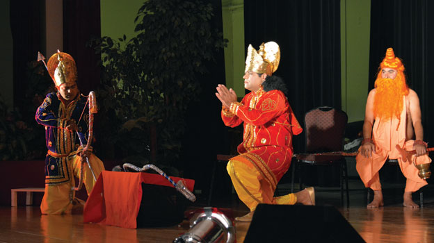 Performers, who flew in all the way from India to perform Ram Leela for the first time in U.S., mesmerized the jam packed auditorim at Sunnyvale Hindu Temple, Oct. 13. Ram Leela is performed during Dussehra, in celebration of the victory Lord Ram over Ravan. Siliconeer presents glimpses.
