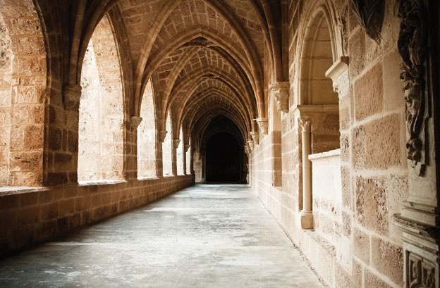 (Above): Monastery interior of the Monasterio de Piedra, Zaragoza, Spain.