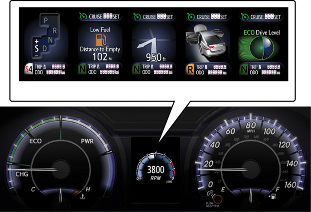 (Above): A view of the Optitron-type gauges in the 2014 Toyota Avalon.