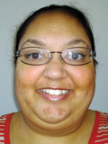He glances around nervously in order to properly assess his surroundings. Two women are seated to his right, and a man is seated to his left. He studies them closely to determine what they may be thinking, but at that moment, the woman right next to him sees him studying her and laughs.