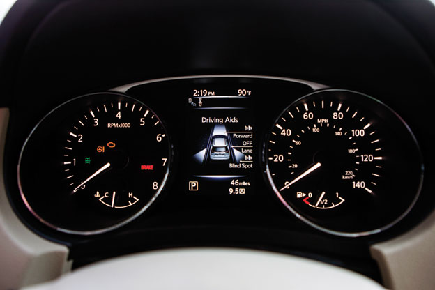 (Above): Interior view of the 2014 Nissan Rogue SL AWD.