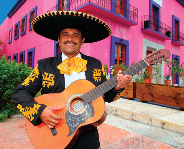 Now I see three Hispanic men wearing huge sombreros entering the restaurant. One carries a violin, the other a huge guitar and the third one has a drum. Smiling benevolently, they surround us and start singing. I don’t understand a bit but this is royal treatment.